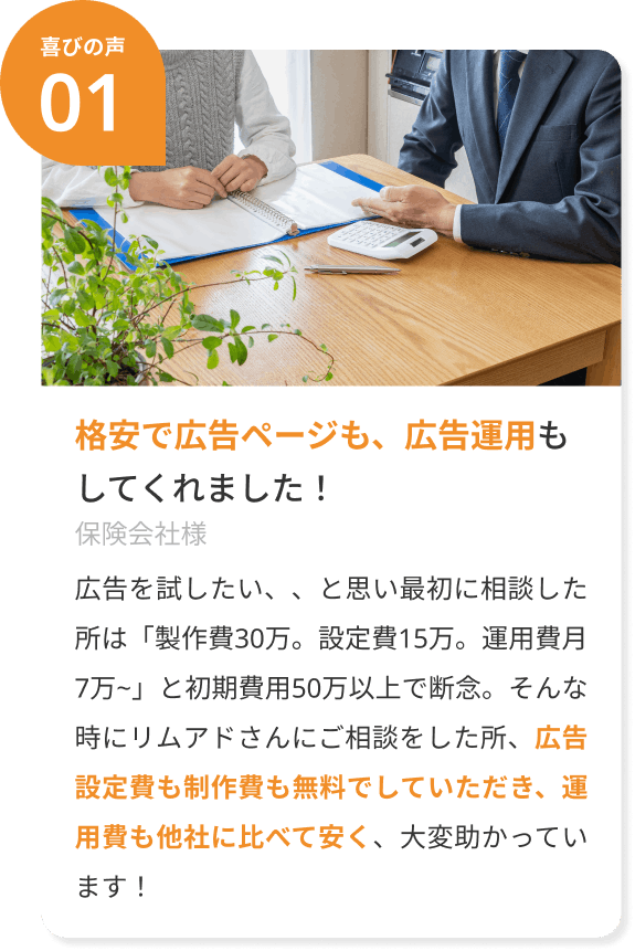 私たちは広告費の代償でサービス内容を大幅に変えたりしません。お客様に応じて最適なプランをご提案します。